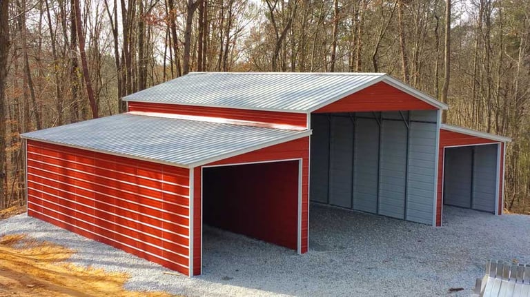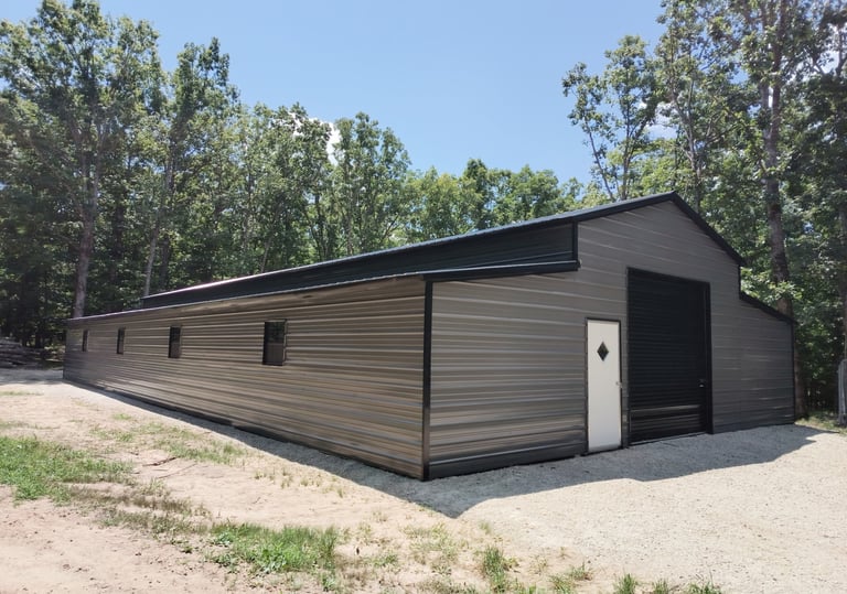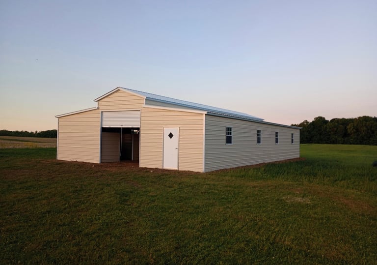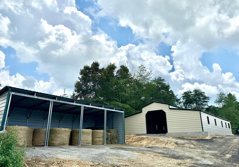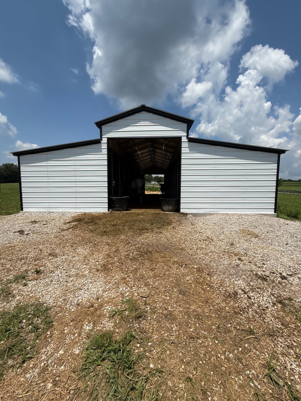 This unique barn with 45 degree angles creates the perfect space for tractors, storage, horses and more.