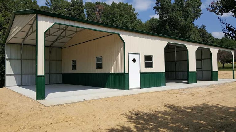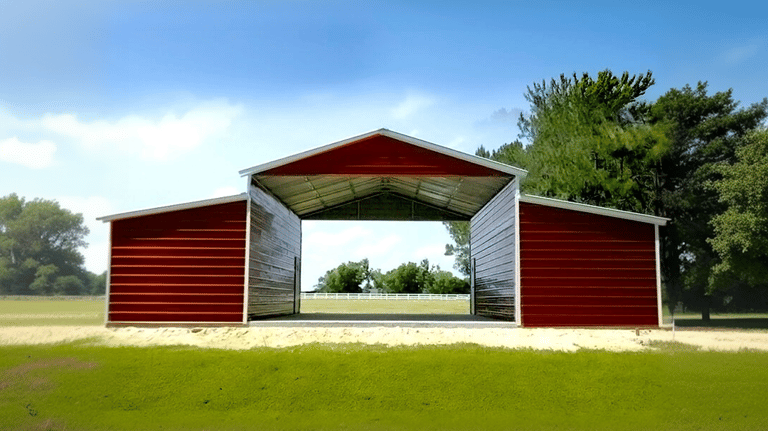 Want to make it aesthetically pleasing? This drive-through barn comes with ample space in the lean-tos and the center is the perfect setting for a carriage.