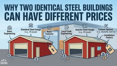 If you’ve ever compared quotes for a steel building, you may have noticed something confusing: two buildings that look almost identical can come with very different price tags.